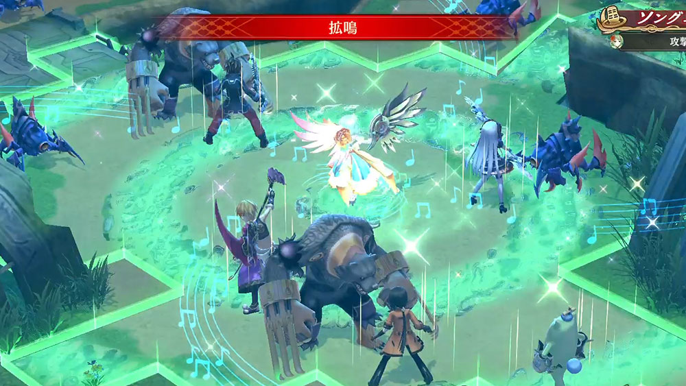 効果の異なる複数の曲から選択して発動可能で、歌の範囲内にいる味方ユニットに強化効果を付与できる!