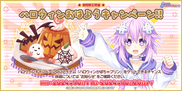 期間中は「ケーキ」が「ハロウィンかぼちゃプリン」になります。