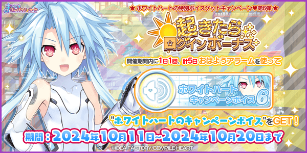 期間中おはようアラームを使って「ホワイトハートのキャンペーンボイス第6弾」をゲットしよう!