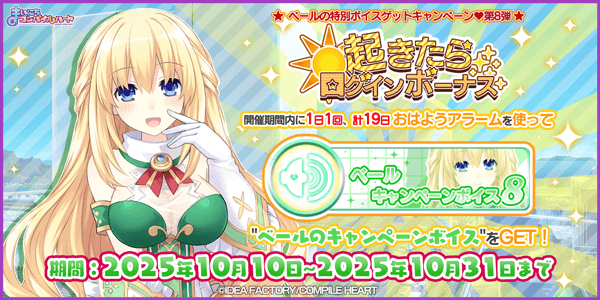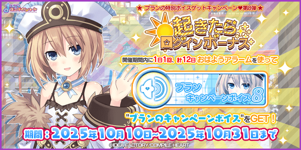 期間中おはようアラームを使って「ネプギアのキャンペーンボイス第6弾」をゲットしよう!