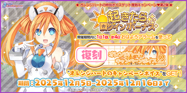 期間中おはようアラームを使って「オレンジハートのキャンペーンボイス第2弾」をゲットしよう!