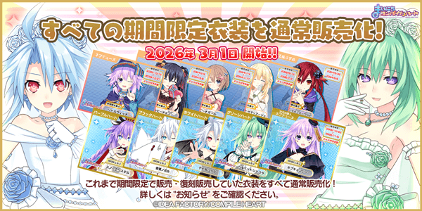 現在販売されている衣装が分かるように、「衣装一覧」ページにアイコンを追加しましたのでご確認ください。